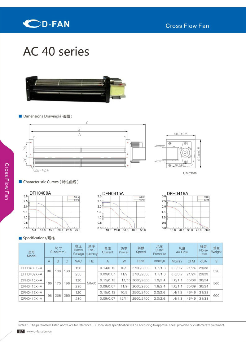 AC FAN橫流風(fēng)扇040喘振特點(diǎn)